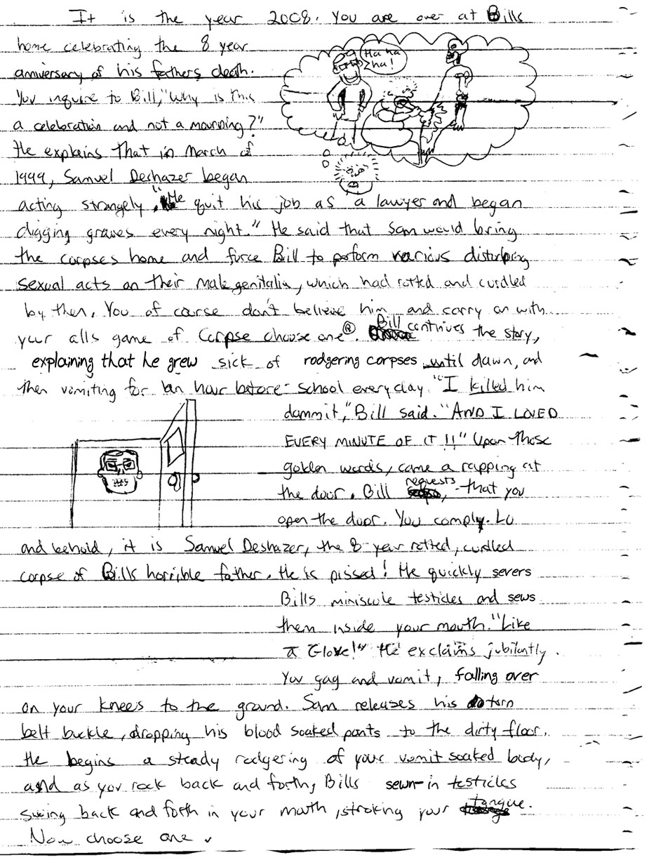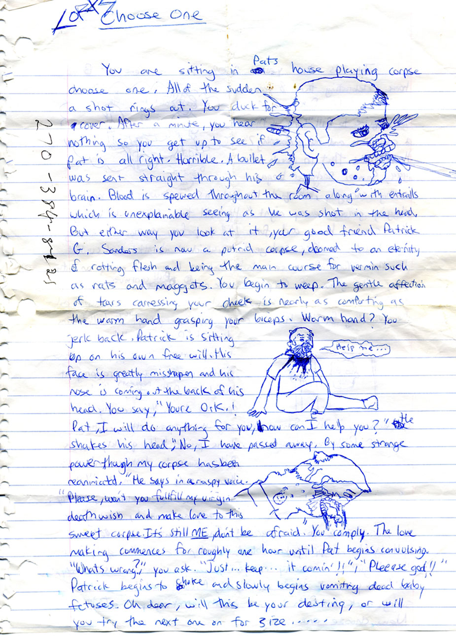 Let’s play a game. Here’s one I found while cleaning up around here; a nasty little piece of trash from high school that still remains alarmingly relevant to our world. The name of the game is Corpse Choose One, and it’s pretty self-explanatory. You are given two scenarios, and you must choose one. Though most of you aren’t familiar with the parties involved in these choices, the situations themselves will attack your senses!
