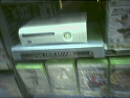 I tried to take a picture of it with my phone-cam without looking like some flea market James Bond, but it turned out really blurry and you can’t even see the red. Though I don’t know that I’d be too inspired to worry about it were I an electronics department wastoid at Target, I can’t shake the feeling that this isn’t a very good promotion for the system.