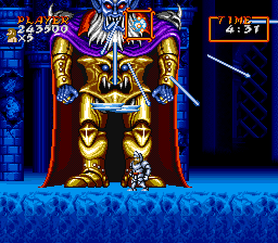 First boss experiences should always be like this. It’s like that joke about seeing your dad’s dick when you’re really young so you’ll always fear its power. The same goes for last bosses– not the dick thing, but that they should be looming towers of fear. Just look at the last boss of Super Ghouls ‘n Ghosts, Sardius!