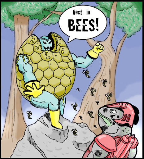 Remember Rocket Salmon? Well, he remembers you! He also remembers the precarious position he was put in thanks to his archenemy Bee Hive in episode 28 of Salmon Fighters.