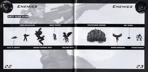 Enemy Profiles/Accessory Lists: The weapons section is paltry at best and downright shameful at worst. It’s not an entirely empty cupboard, but what’s there is just a list that outlines each gun with a sentence of description. They get points for including an essential enemy section, but lose them right away for having odd, blurry pictures that might as well be Rorschach tests. Also included: images and descriptions of each stage.