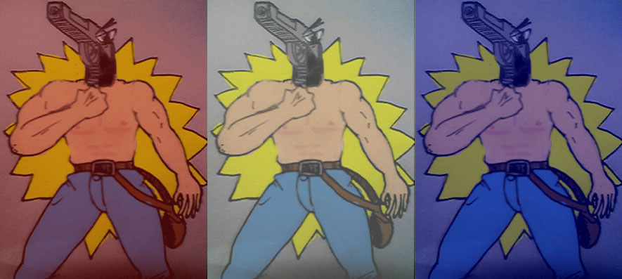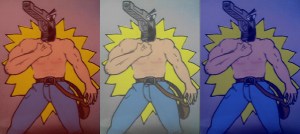 Here is perhaps the final entry in my don’t-have-a-scanner-here-so-I’m-capturing-small-sketchbook-drawings-via-my-cell-phone-camera-then-photoshopping-them series. It is the country’s great hero Son of a Gun and he is very proud and fierce.