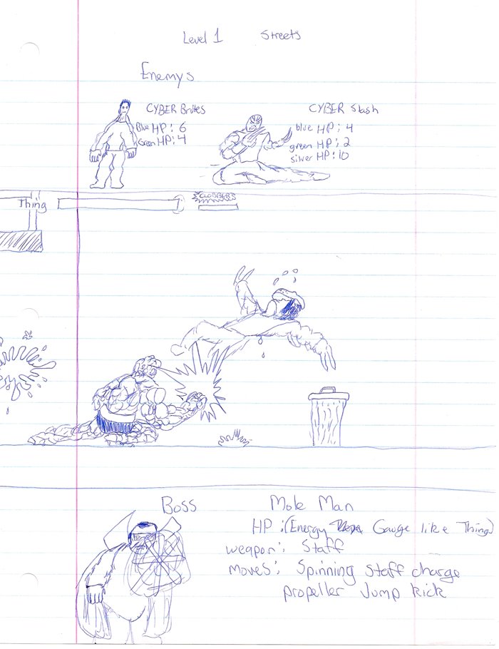 The first stage is a doozy: “The Streets.” Note the appearance of my obsession with enemies. Also, I’m pretty sure the bosses exist based on the Toybiz toys I had scattered around me.