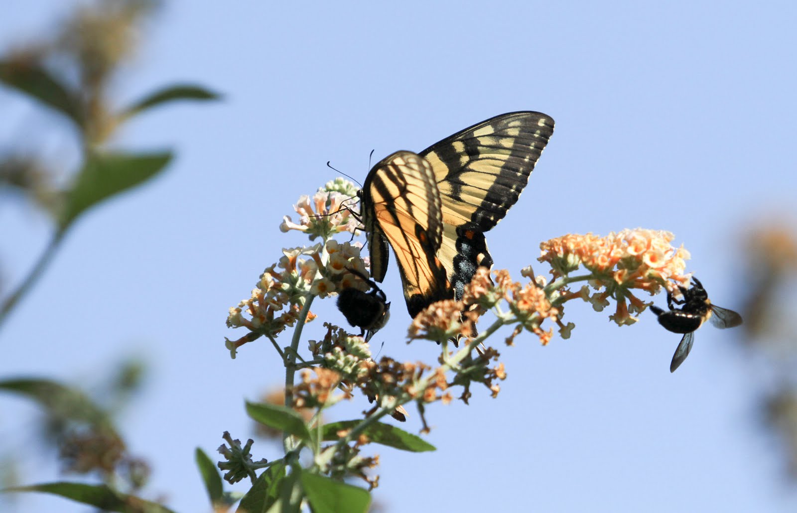 Our neighbors have a butterfly plant. I don’t know the scientific name but let’s just call it planticus butterflyum, because butterflies and bees hold it in high regard, coveting its many treats. Anyway, I took some pics with a Canon 7D + 70-200 mm lens. Click to enlarge.
