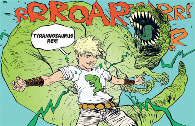 The rest of the comic follows Battling Boy as he acclimates to his new surroundings on Earth and gets ready to fight off the monster menace with his suitcase full of power-granting t-shirts. If ever there were a comic with a central conceit handmade for marketing, this is it. One can easily imagine an alternate universe in which Battling Boy is a Saturday morning sensation and little kids are running around with shirts sporting Elephant, T-Rex, and Gryphon designs.