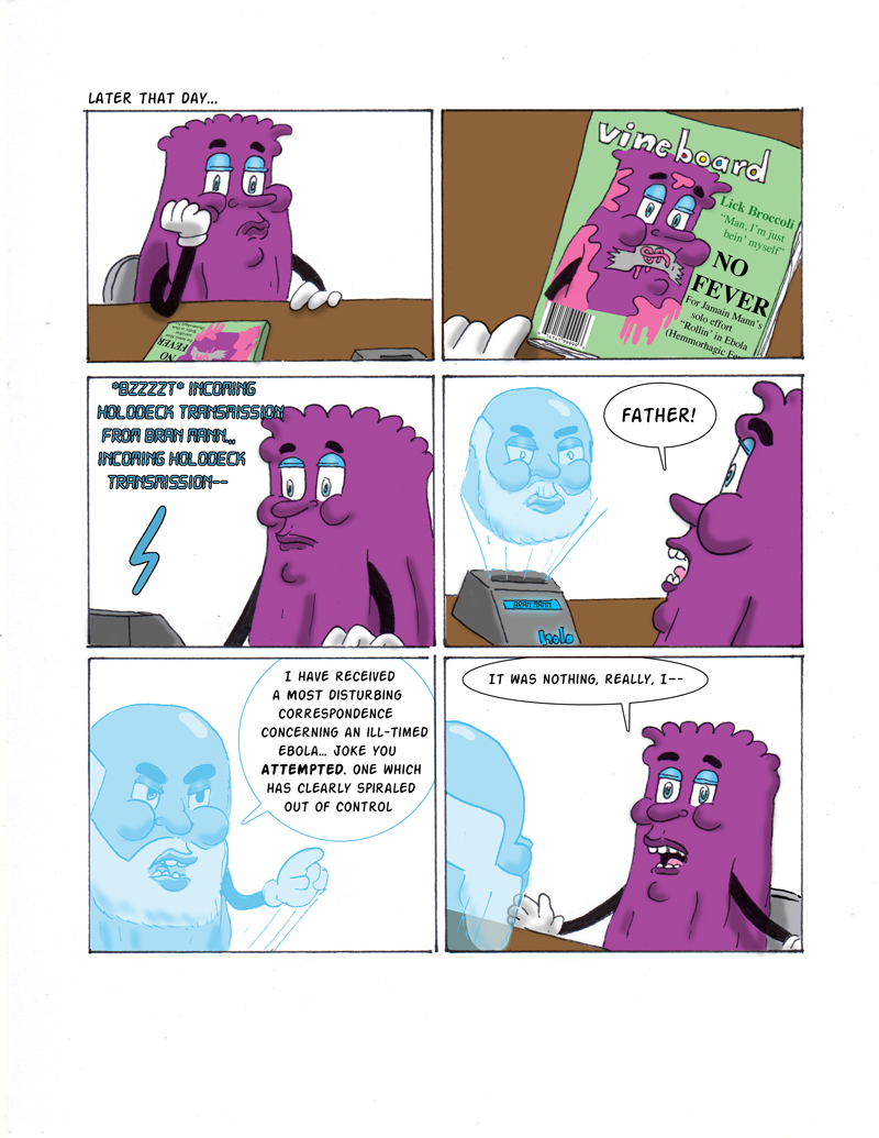 You can read the second issue, our Dryfolds Night Halloween special, here. And now, without further ado, enjoy Never Too Late for Ebola!