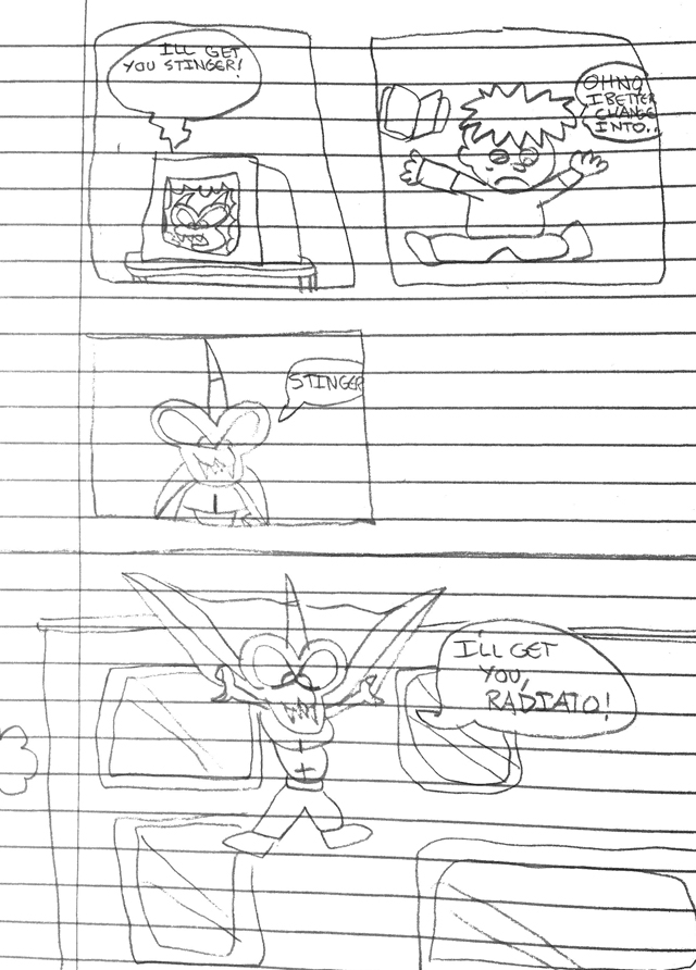 I was visiting home this past weekend, so of course I had to dig through all my old stuff for a wave of nostalgia. This time I discovered some things I had been trying to find for a long time, including some of my very first comics. Thus, I present to you—hailing from I’m guessing sometime around 1990, when I was 9 or 10—The Stupendous Stinger!