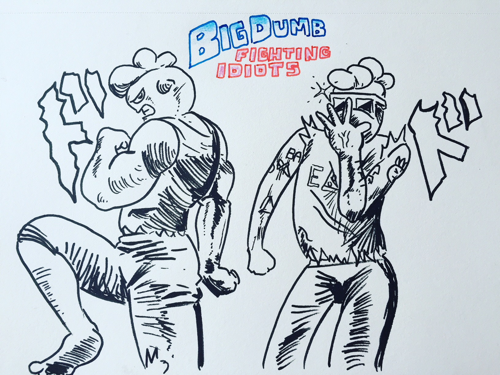 big dumb fighting idiots, Comics weekend idiots December 13, 2015July 9, 2017by Joseph Luster A little Big Dumb Fighting Idiots sketch inspired by Hirohiko Araki’s amazing JoJo’s Bizarre Adventure. I’m off to England for a couple weeks tomorrow. Two more comic pages on Thursday! Share this: Click to share on X (Opens in new window) X Click to share on Facebook (Opens in new window) Facebook Like Loading...