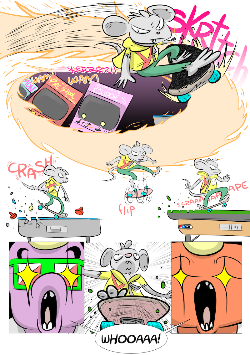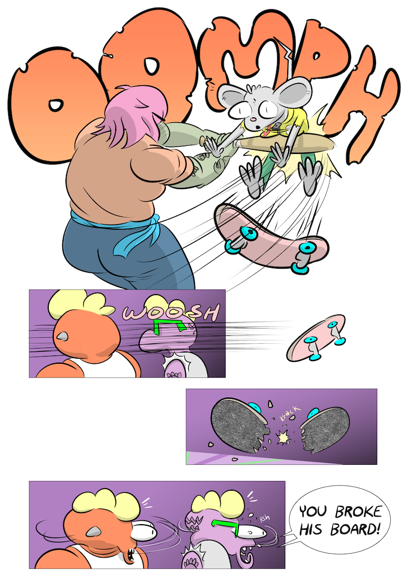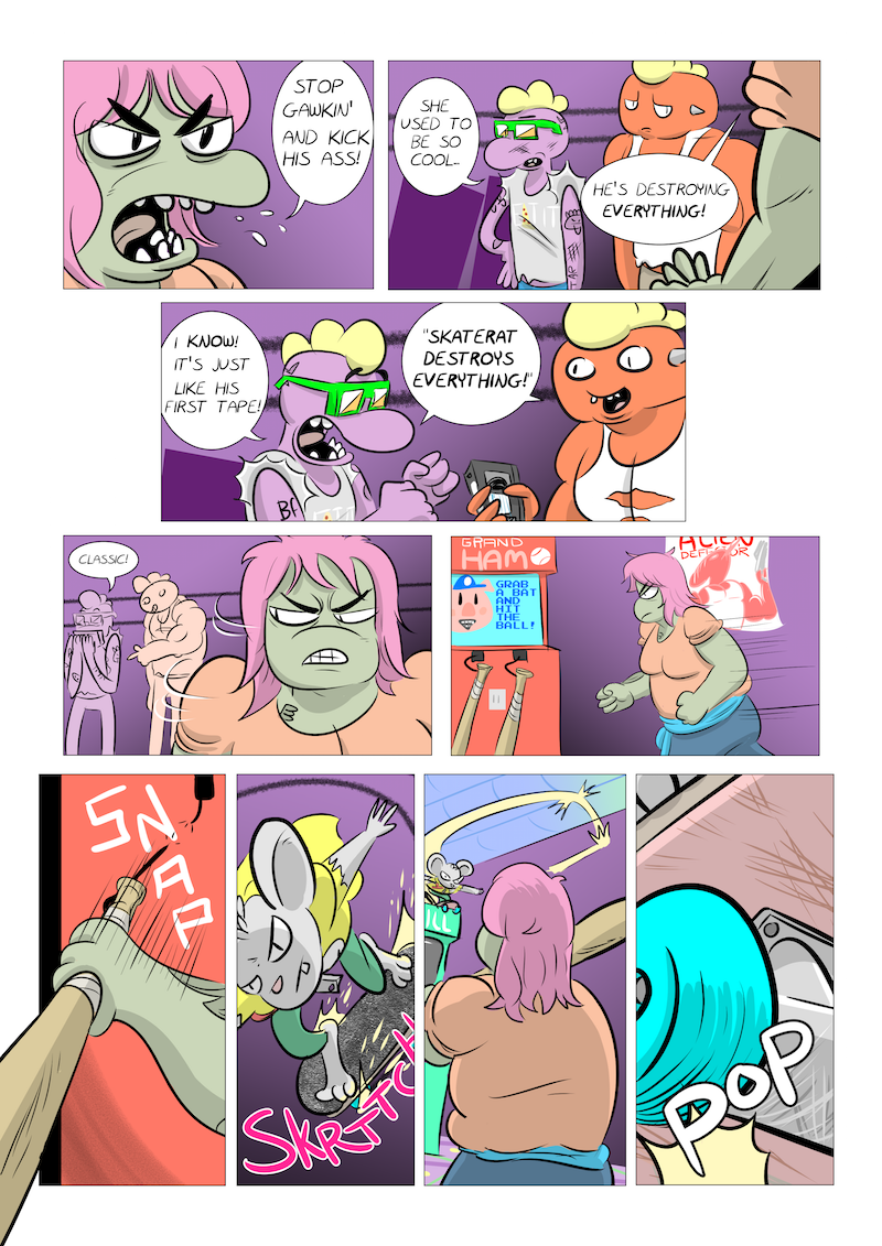 big dumb fighting idiots big dumb fighting idiots 19 March 31, 2016July 9, 2017by Joseph Luster Previous First – Previous – Next NEXT TIME (Thurs 4/7, 1:00pm EST): Skaterat Strikes Back Skaterat’s intro was so important it warranted a three-page week. Come back next time for more action, which should take us up to page 50! Thanks for reading! Share this: Click to share on X (Opens in new window) X Click to share on Facebook (Opens in new window) Facebook Like Loading...