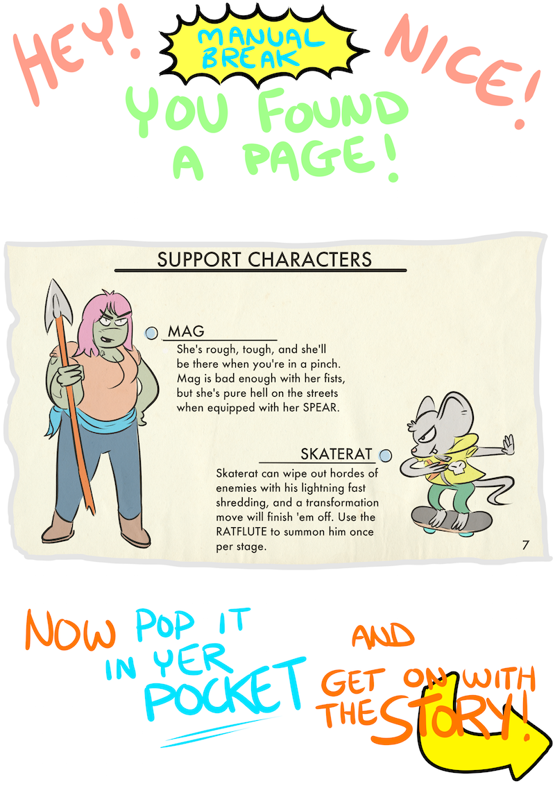 I lied last week. By the time you read this I won’t be back in the U.S., but I will be back in England. Anyway, we’re officially done with Skaterat, unless some idiot ever decides to blow that stupid flute. Let’s hope it never comes to that. Next time we will for real be starting a new leg of the adventure, so I hope you’ll stick around to see what happens, and tell your friends about Big Dumb Fighting Idiots!
