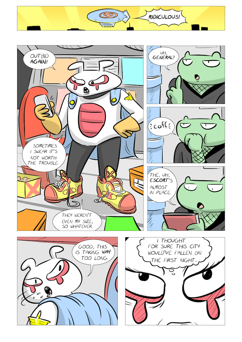 Who or what is Psycho Crystal? Find out next week on Big Dumb Fighting Idiots!That’s it, really. I don’t have much to say this week, I just finished page 72 one minute ago. Tell ya friends and family (about the comic, not my last-minute coloring).