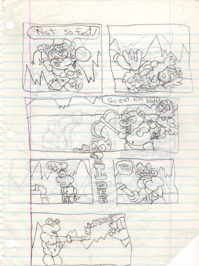 It’s the first week with no new Big Dumb Fighting Idiots until November 26, which is weird! In the meantime I thought I would take everyone back to a more innocent, totally-not-copyright-infringing time with an old comic of mine I found at home. This one must have been from when I was around 10 years old, and you better believe it has absolutely nothing to do with Battletoads!