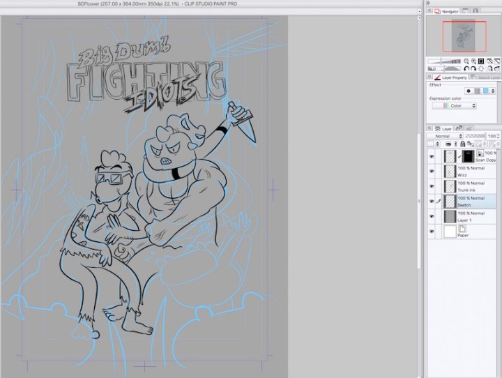 I recently put together a cover for Big Dumb Fighting Idiots, anticipating the eventual need for printing as we enter the final chunk of the story. Thus, I decided to document the process to show how I did it from beginning to end. While this is by no means the ultimate way to make a cover, it should serve as a nice overview of the way I work on this kind of stuff.
