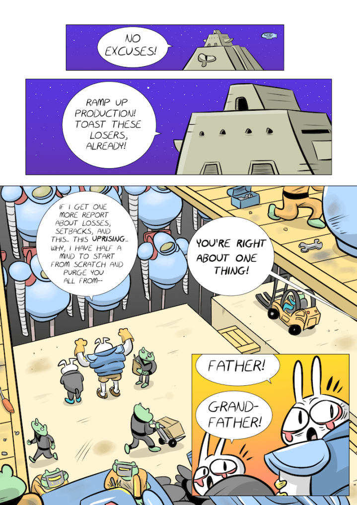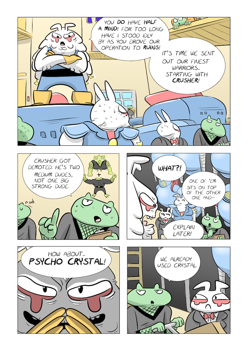 Hey, finally, it’s everyone’s favorite family of villains again! I think there have been maybe slightly under 10 pages out of 168 focused on these dudes… but they’re schemin’! We’ll see what the next leg of their plan entails soon. Thanks for readin’, and spread the word about BDFI as we approach the climax!