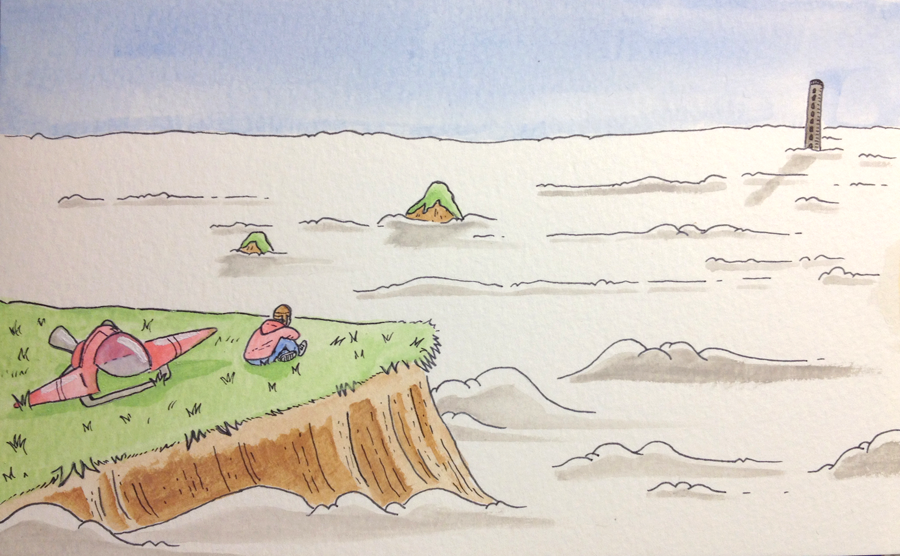 Alright, so we’re now officially a little over halfway through the watercolor experiment. I busted out number six last night, all the while asking myself why I keep choosing to draw things that require at least some kind of proficiency in perspective. Today I’ll be doing something much different, but for now you can enjoy watercolor vi below.
