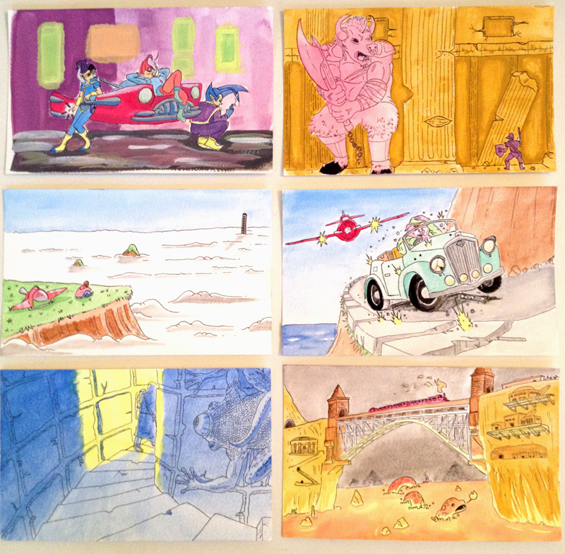 If only that were the name of a rad new game. Instead, it’s the subject of my two most recent watercolors, bringing the total to 8 (of 10). First up is Tuesday’s, which imagines a banned Saturday morning cartoon that was, perhaps, ahead of its time.