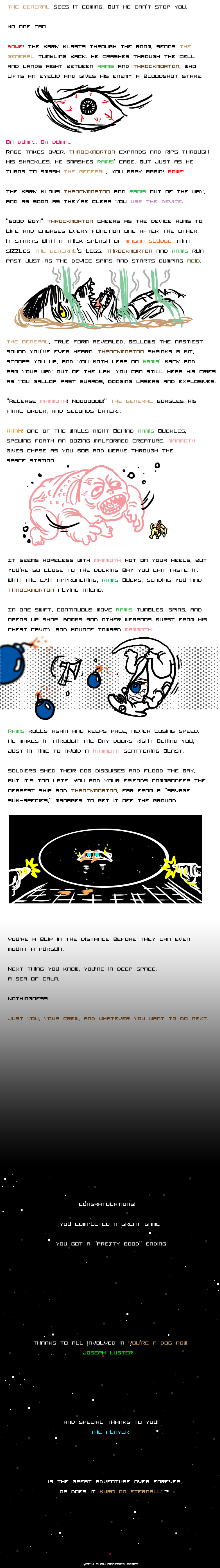 “They are remarkably dull,” The general says. “Savage sub-species of the worst variety. Don’t worry, though, they’re heavily sedated. Once we take care of them we can figure out what to do with you.” He gives you a once-over. “In a couple months I’d say you’ll make a hell of a soldier.”